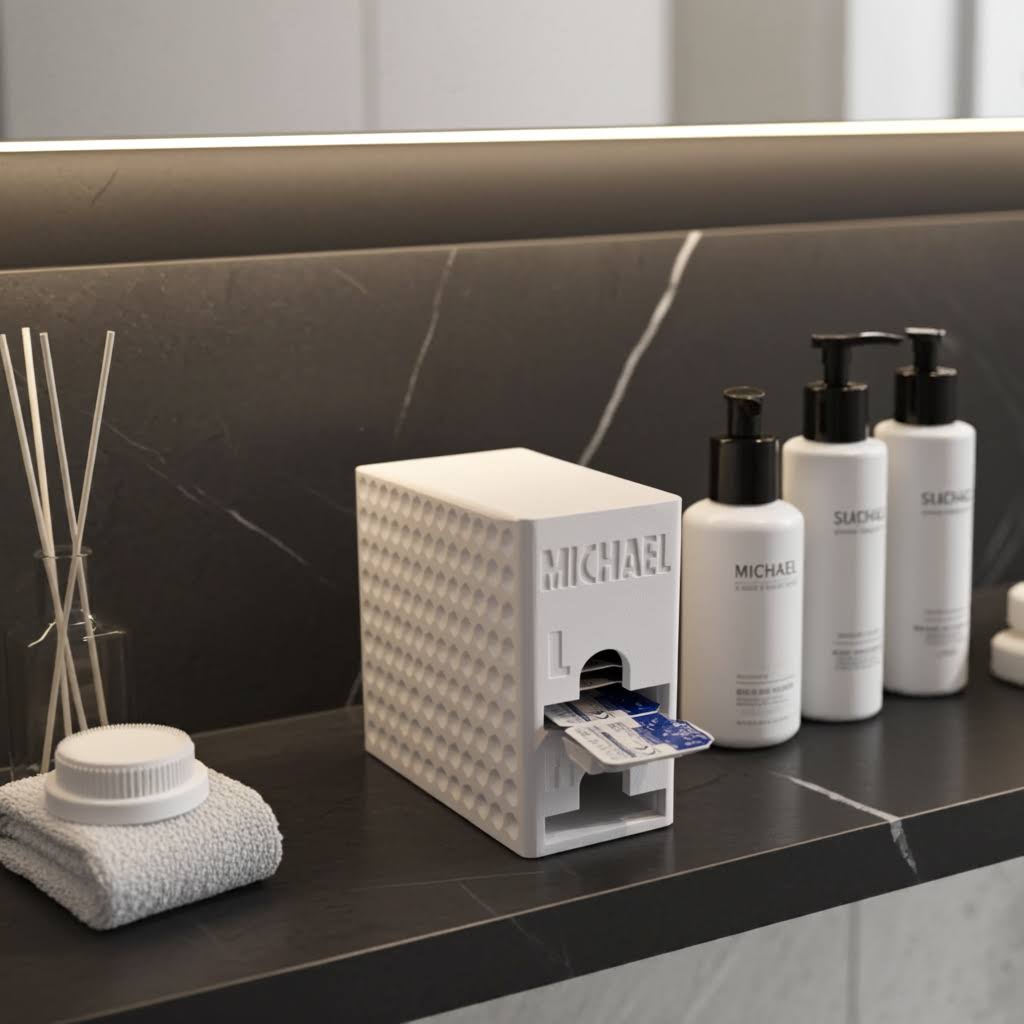 Der 5er Linsenspender ist nicht nur ein Accessoire – er ist die ultimative, 3D-gedruckte Lösung gegen das Chaos von Tageslinsen-Blisterverpackungen. Entwickelt für Nutzer, die Wert auf Ordnung und Stil legen, bietet dieser hochkapazitive Kontaktlinsenspender Platz für einen Vorrat von bis zu 60 Tageslinsen (ein voller 2-Monats-Bedarf). Nie wieder suchen Sie nach Ihren Linsen; stattdessen genießen Sie bequemen und hygienischen Zugriff auf Ihren Vorrat, der in den zwei integrierten Lademagazinen optimal organisiert ist.